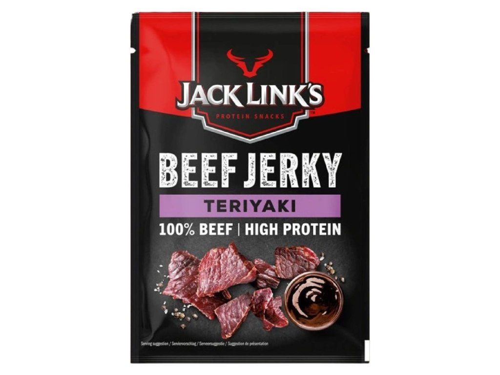 Beef Jerky je sušené hovězí maso (100%) s nízkým obsahem tuku (max. 4%) a vysokým podílem bílkovin - až 39%, což z něj dělá výborný a zdravý snack z prémiového hovězího masa tenderloin. Snack je vhodný k přímé konzumaci, a dokonce je i součástí ,,survival kit-u" mnoha ozbrojených složek. Toto 70-gramové balení je vyrobeno z prémiového hovězího masa se zachováním přirozených a původních nutričních hodnot. Sušené maso od výrobce Jack Link's je číslo 1 v segmentu zdravých masných snacků v USA. Společnost Jacka Linka byla založena v roce 1885 a dnes vyrábí přes 100 druhů masných snacků a působí ve více než 40 zemích.